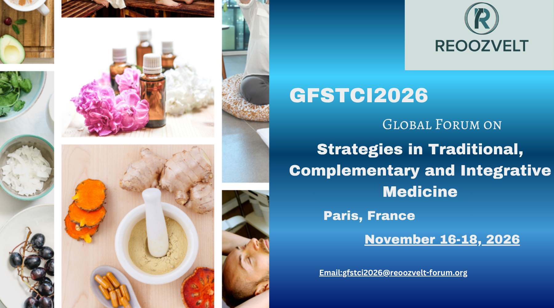 It’s a great honor for us to invite you all to participate as a Speaker, Delegate, Poster Presenter, Sponsor and/or as an Exhibitor at “Global Forum on Strategies in Traditional, Complementary and Integrative Medicine" (GFSTCI2026), scheduled to be held from November 16-18, 2026 at Paris, France.